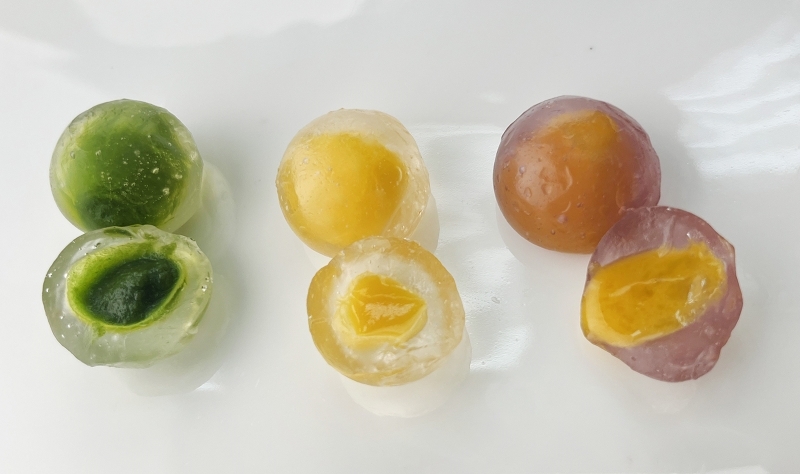 為一款創新的內仁產品,外皮晶瑩剔透、軟Q有彈性,可透出裡面的內餡。烤焙後有流動性的溏心效果,能營造爆漿口感,一次享受多層次的口感和風味。