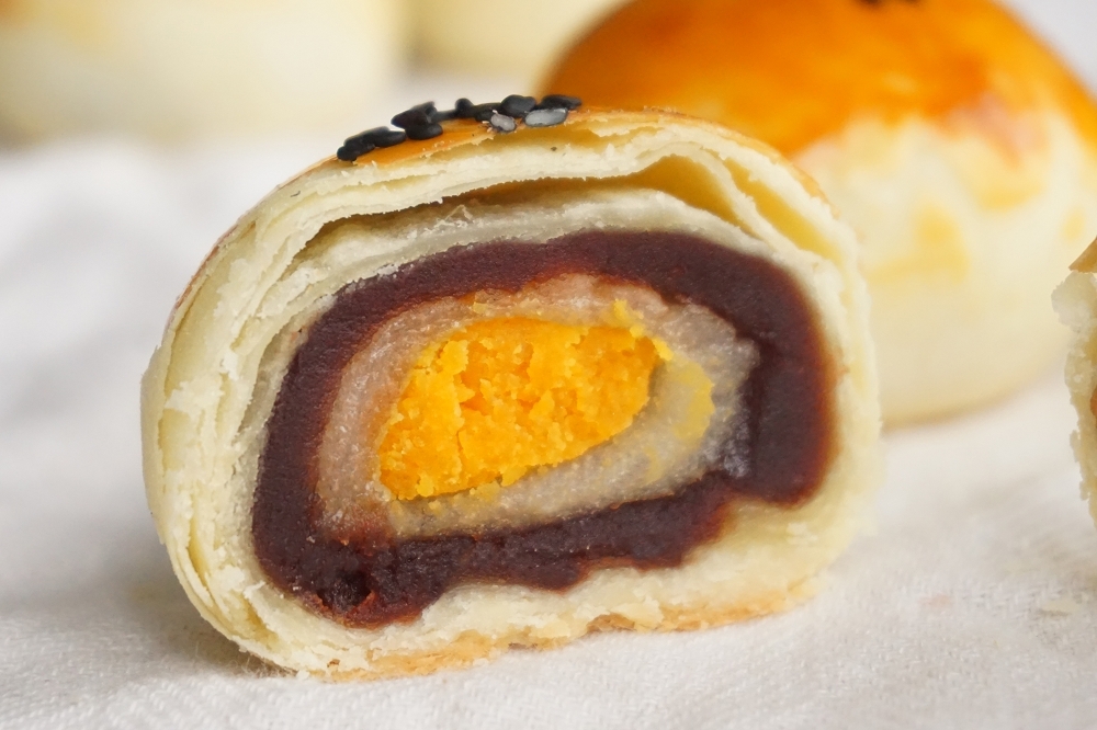 內層是香氣十足的鹹蛋黃,外層搭配QQ的麻糬,黃白相間讓視覺有新的感受,雙層口感散發著濃郁鹹蛋黃香,一次讓你品嚐兩種口感及風味,適合使用於月餅、酥類月餅(蛋黃酥、芋頭酥...)、各式糕點。