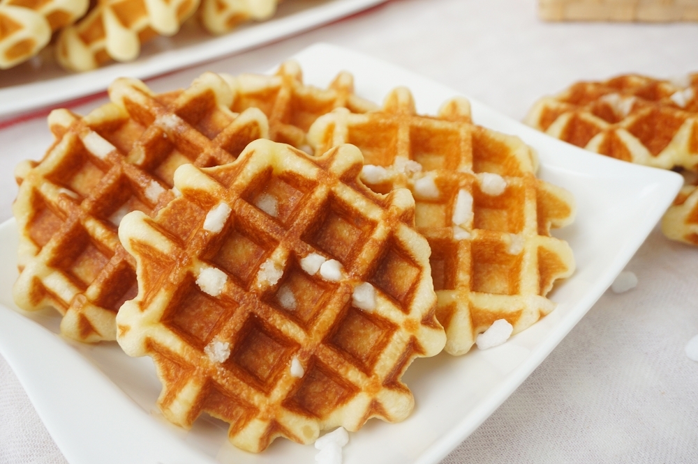 5. 取適量的麵糰於160℃的鬆餅機中,約烤